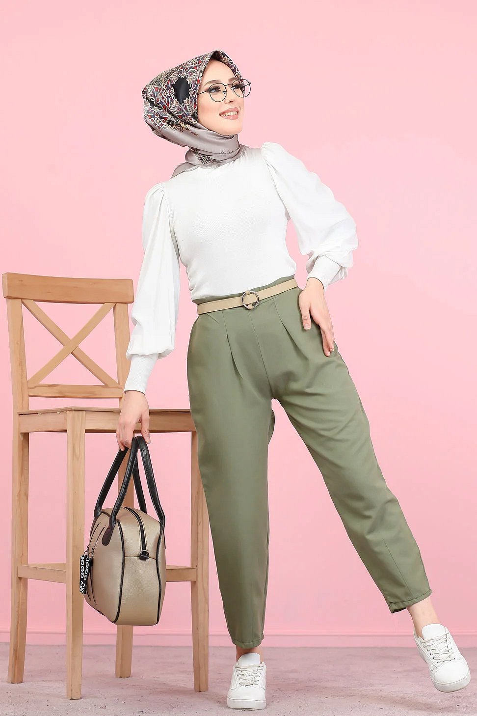 Pantalon à pinces pour femme (Vetement Turque - Modeste Fashion) - Couleur kaki Vetement & Accessoire