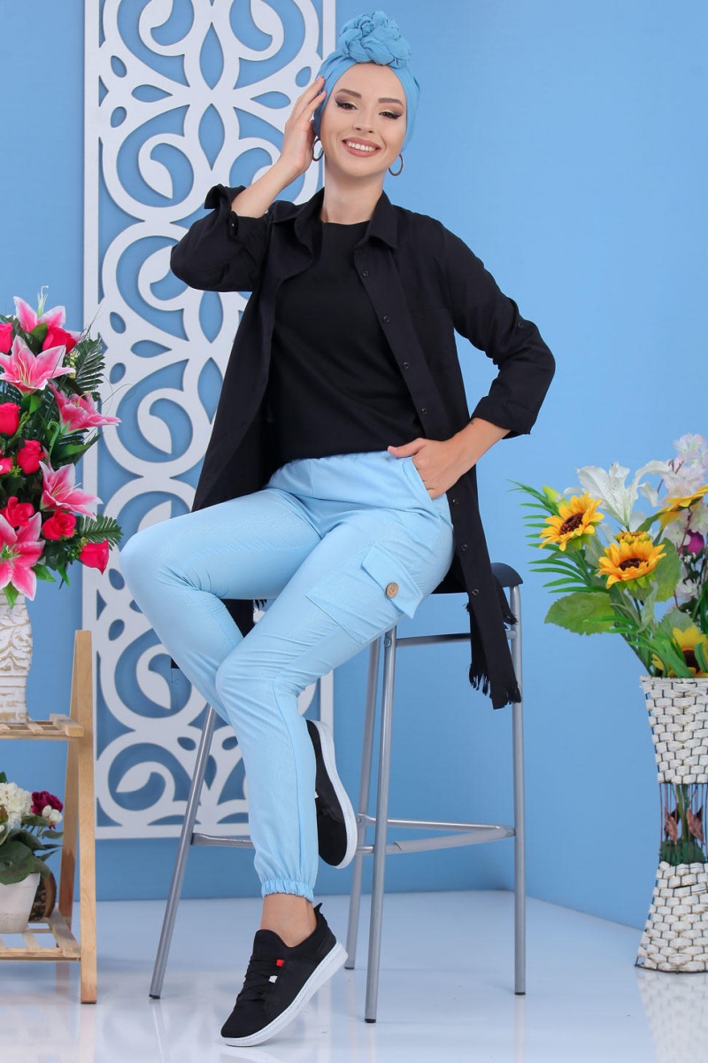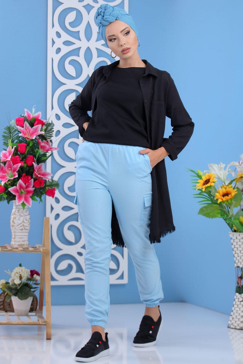 Pantalon baggy pour femme - Couleur bleu ciel Vetement & Accessoire