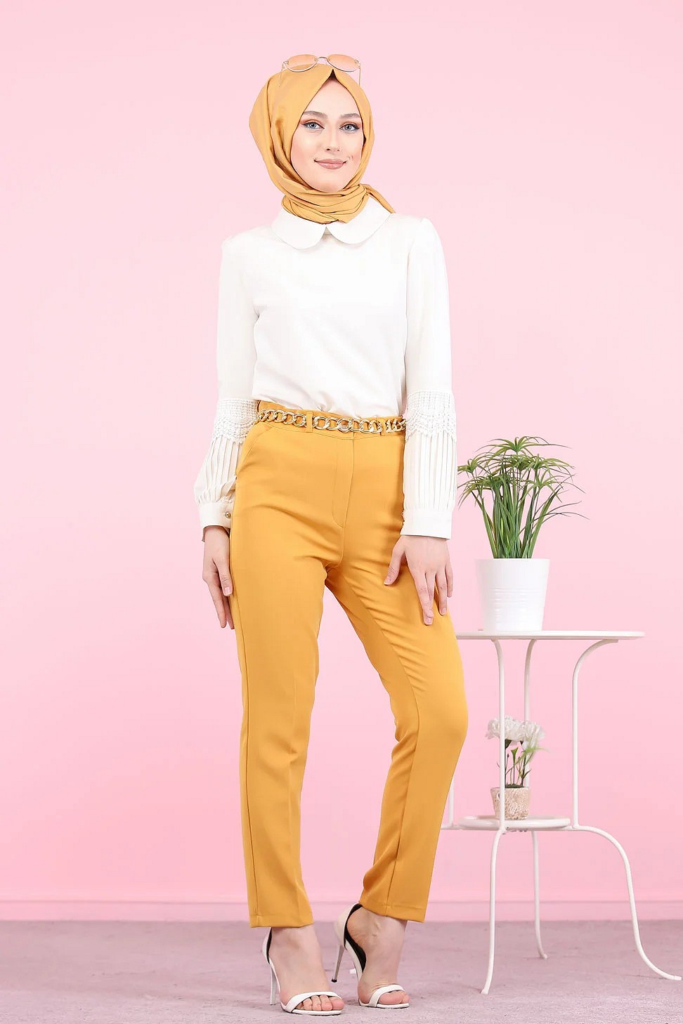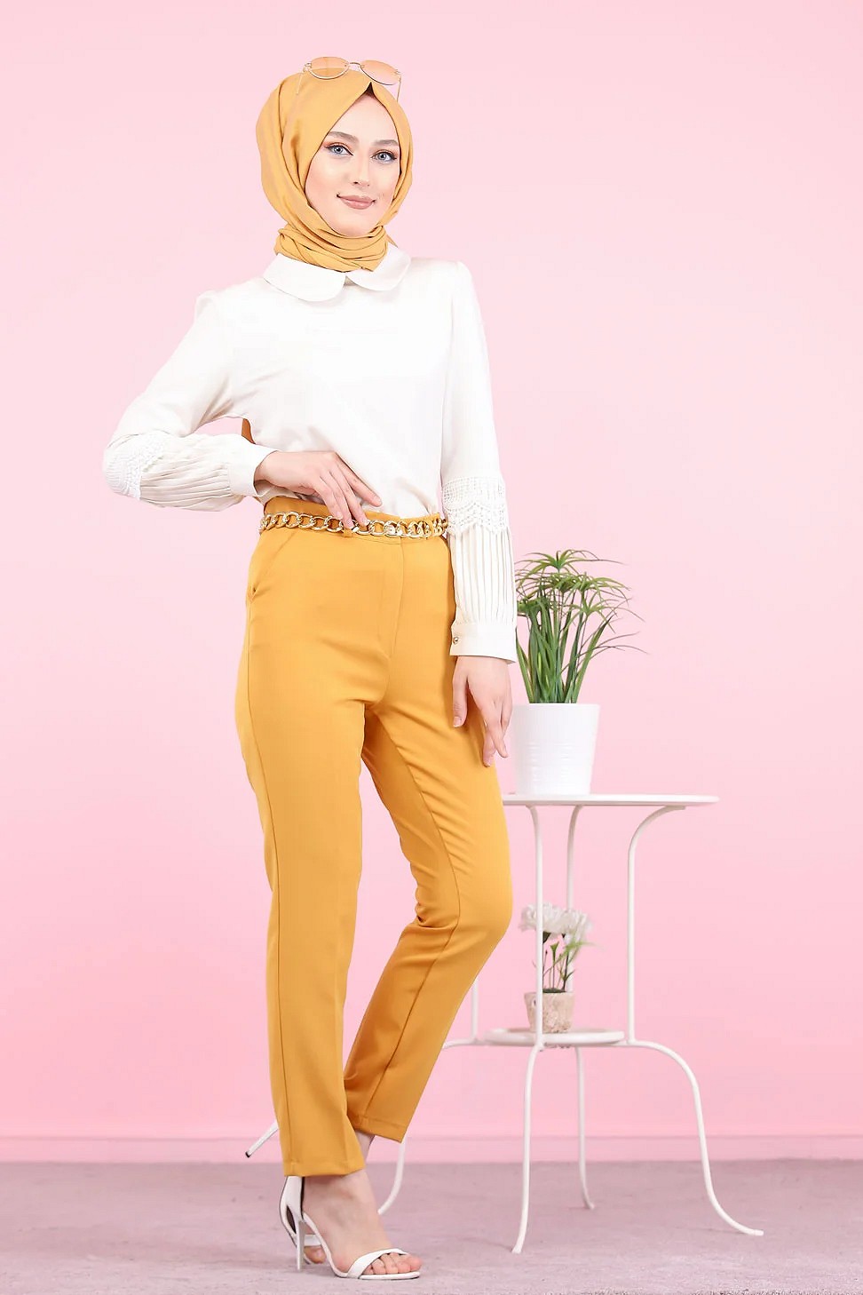 Pantalon cigarette pour femme (Vetement Hijab) - Couleur jaune moutarde Vetement & Accessoire