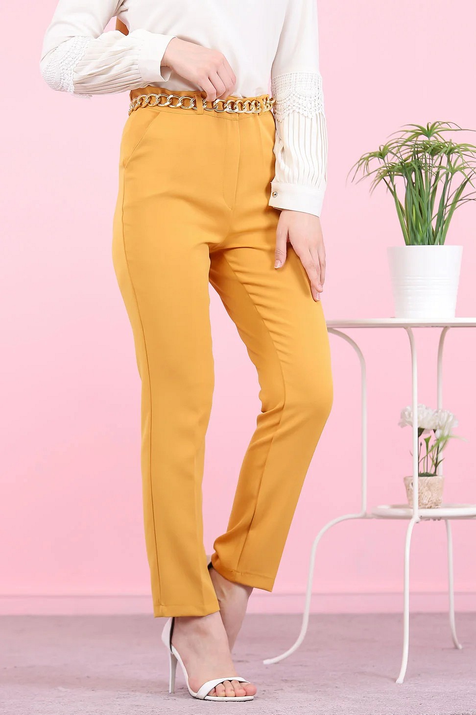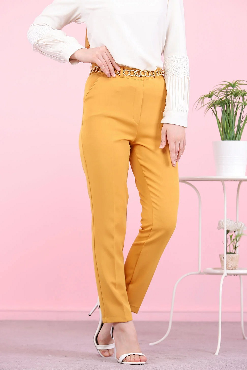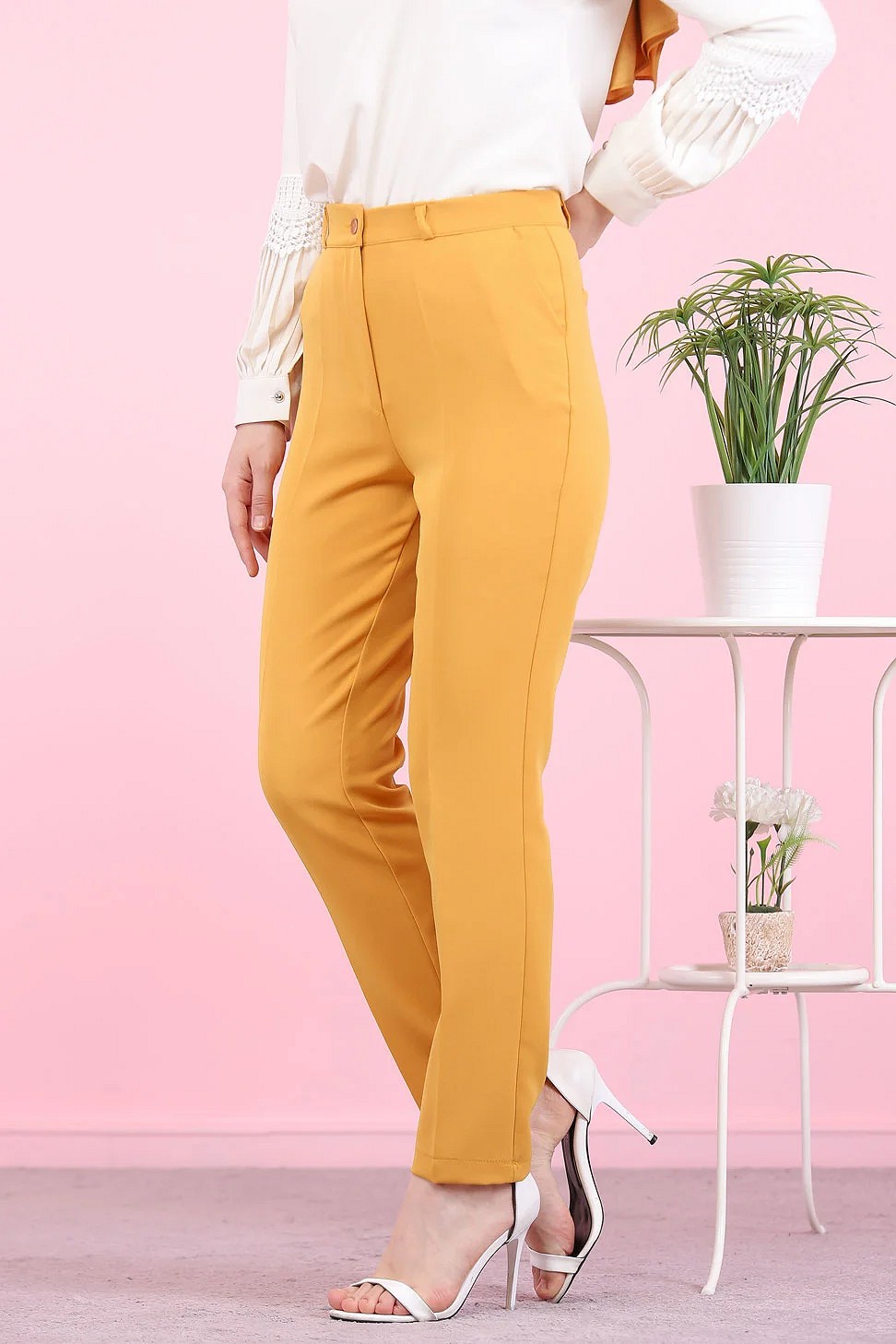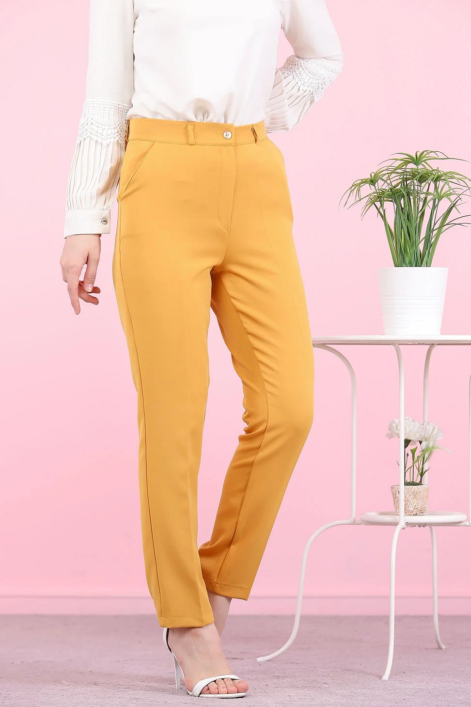Pantalon cigarette pour femme (Vetement Hijab) - Couleur jaune moutarde