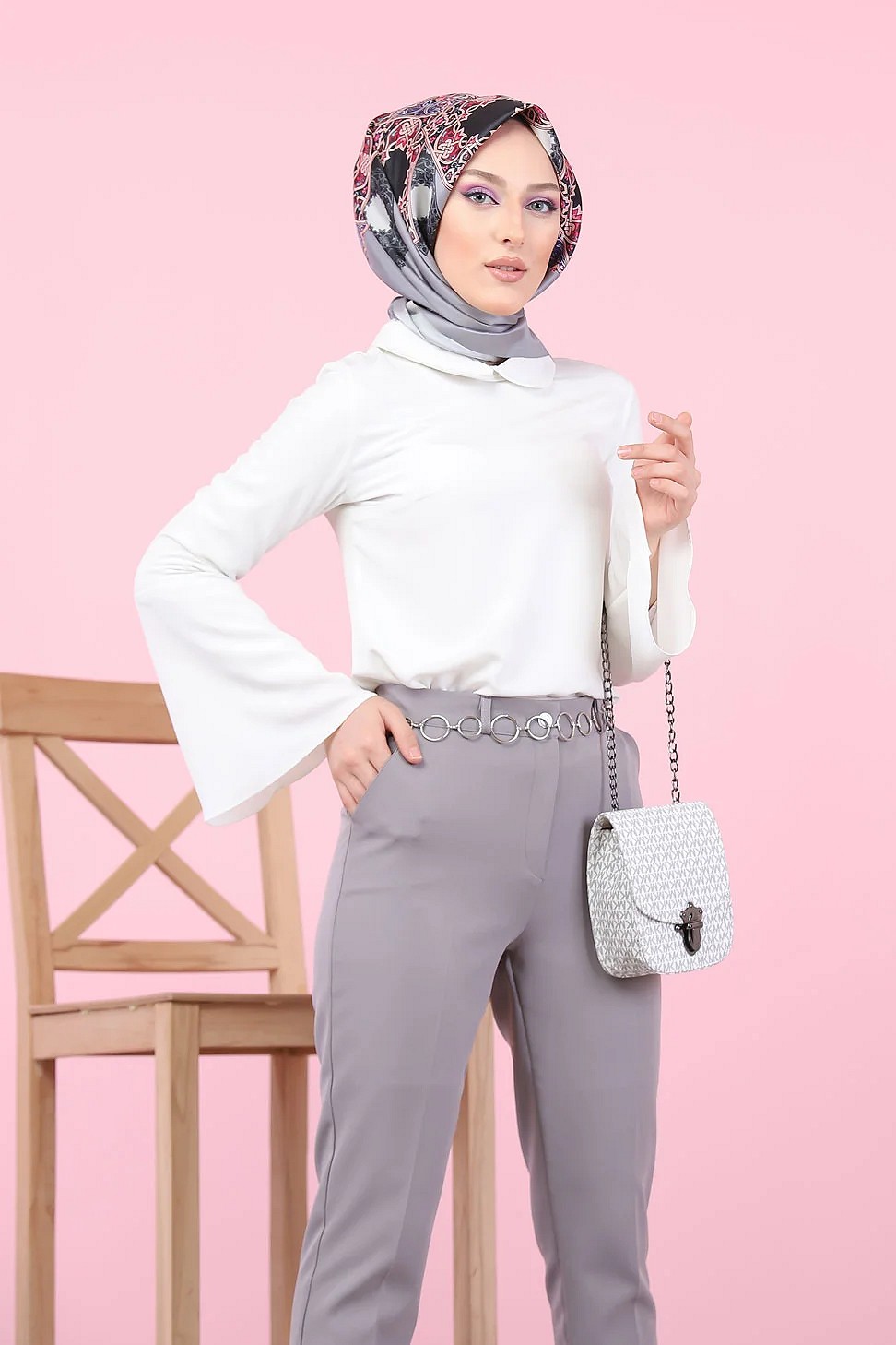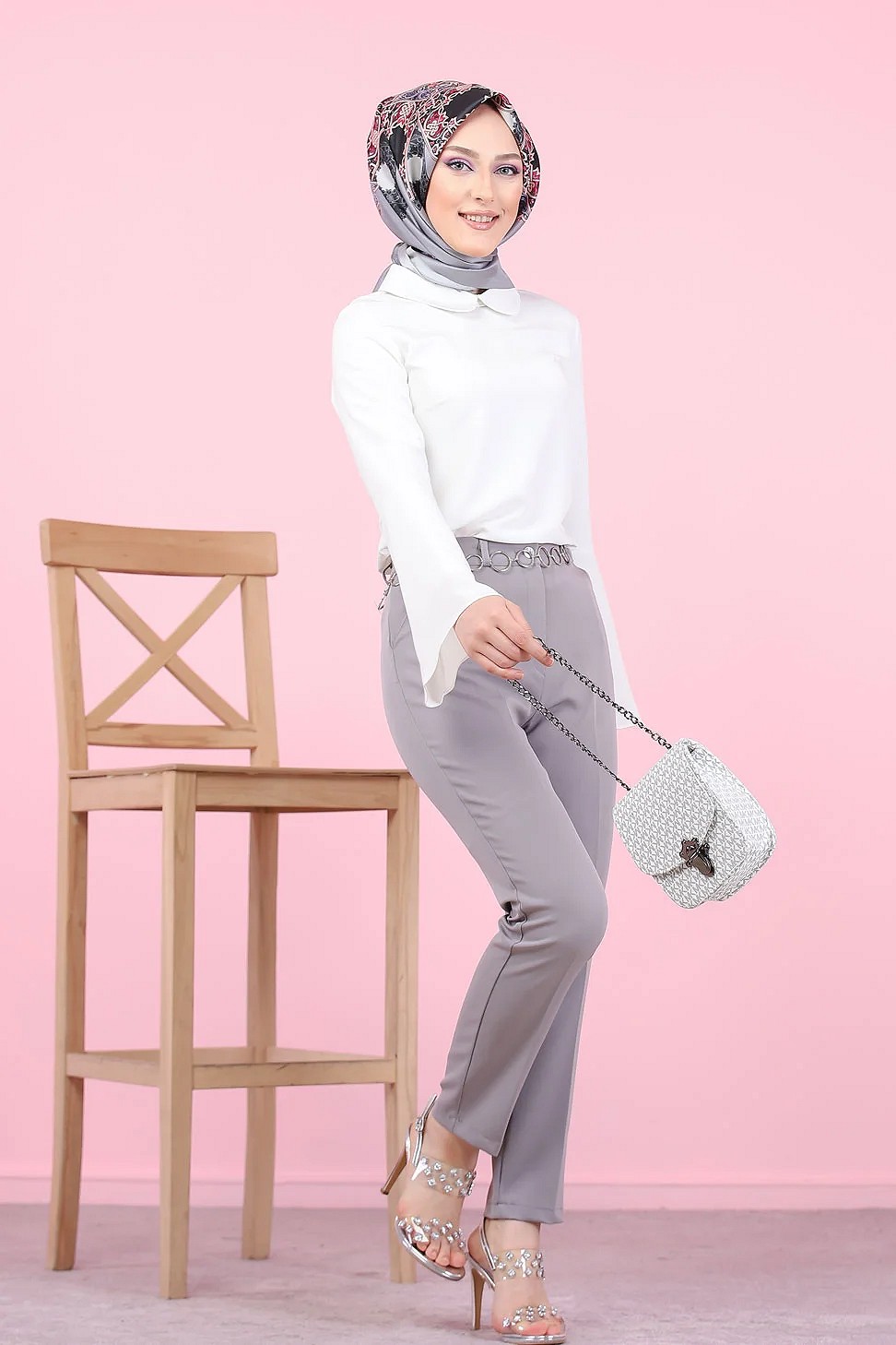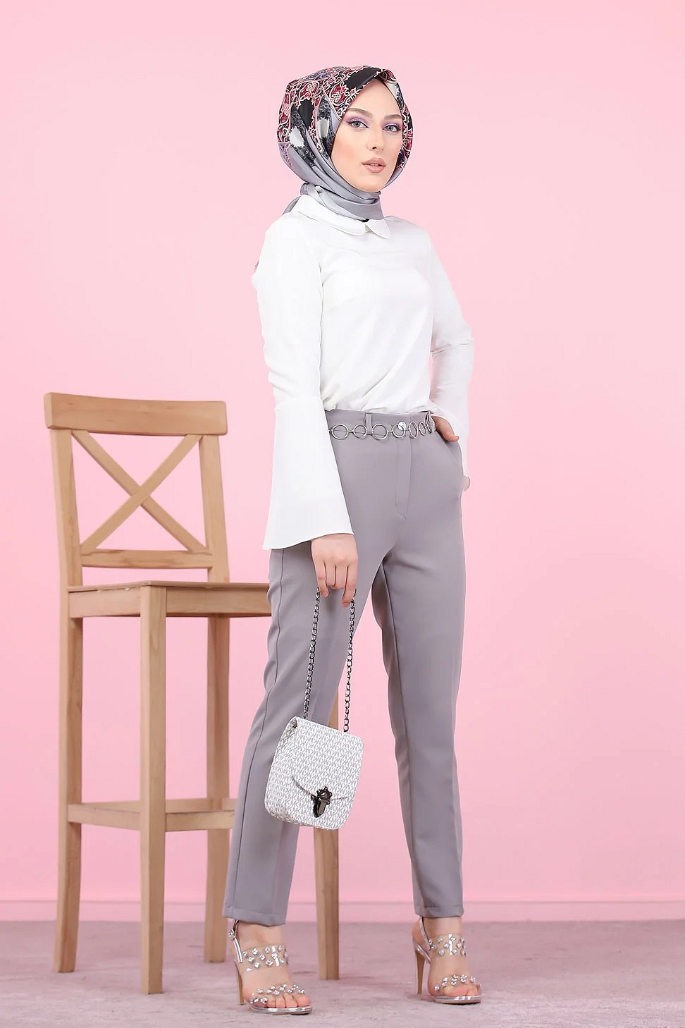 Pantalon cigarette pour femme (Vetement Hijab - Grande taille disponible) - Couleur gris