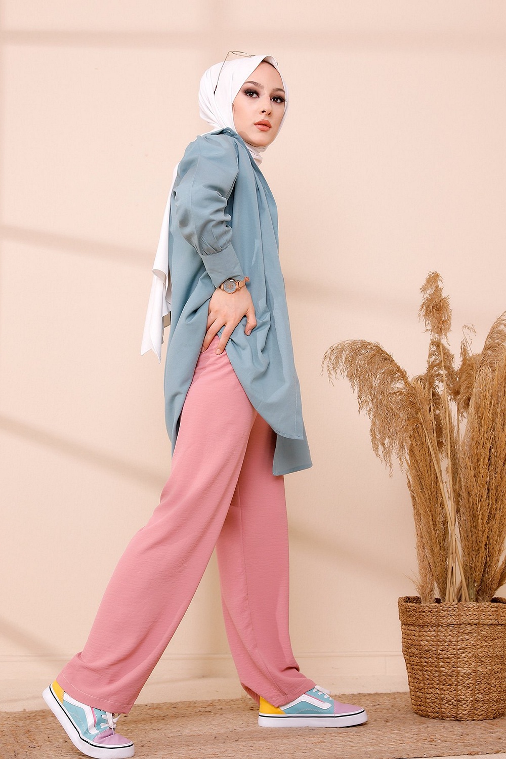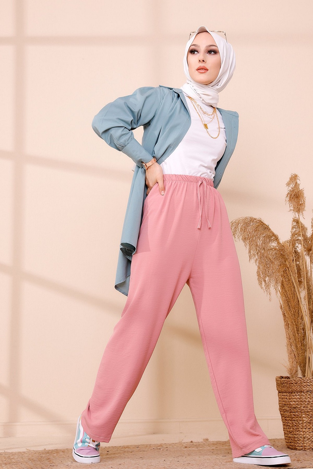 Pantalon à pinces (Vetements en ligne pour femme musulmane) - Couleur Gris Bleu - REF. 32266 (18.00 €)