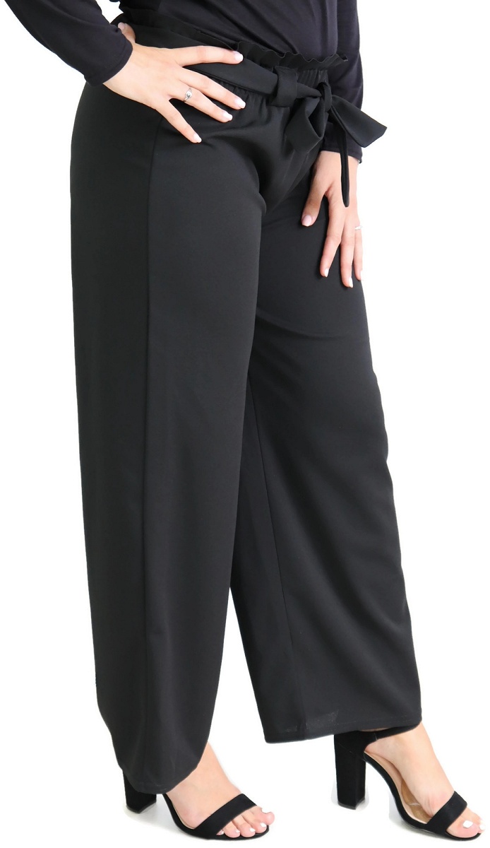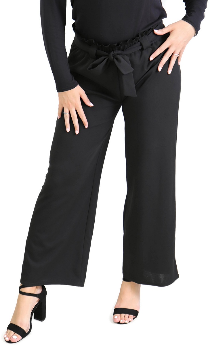 Pantalon élastiqué. Une coupe élargie à la jambe et une taille ceinturée d’un large lien à nouer pour un look tendance et décontracté.