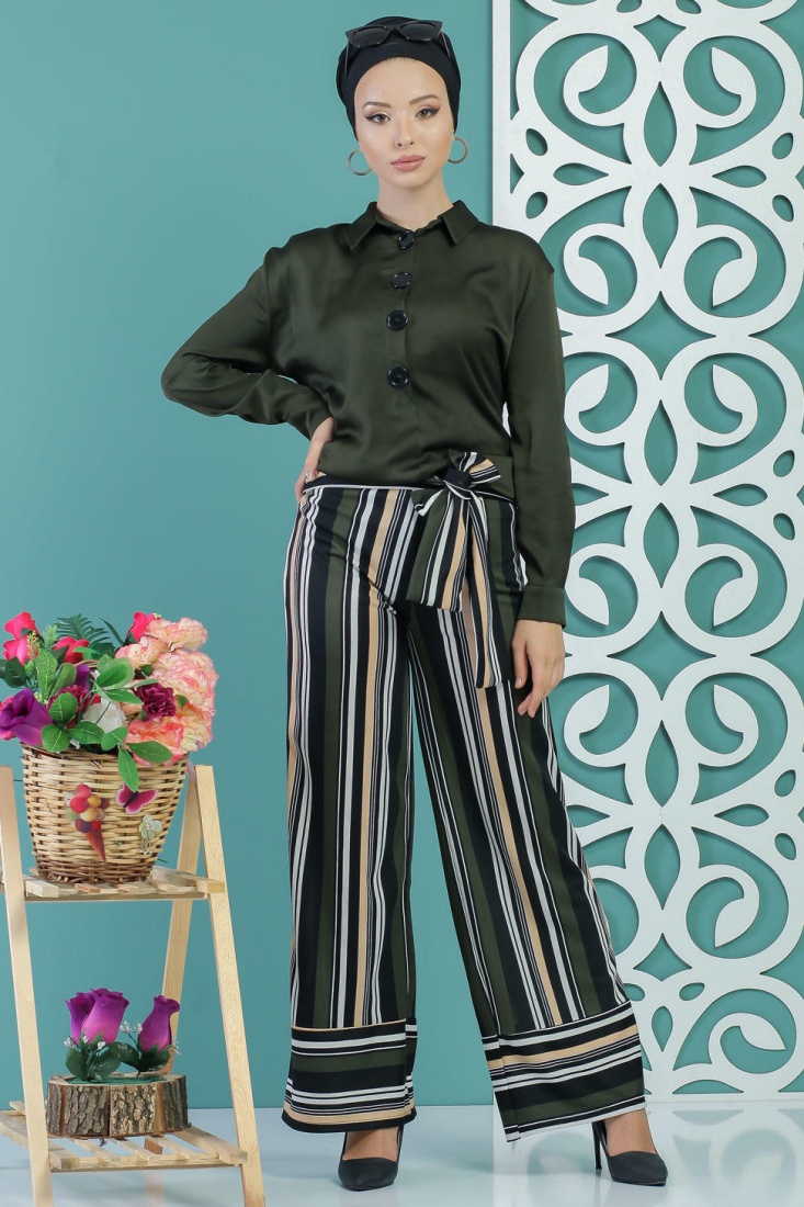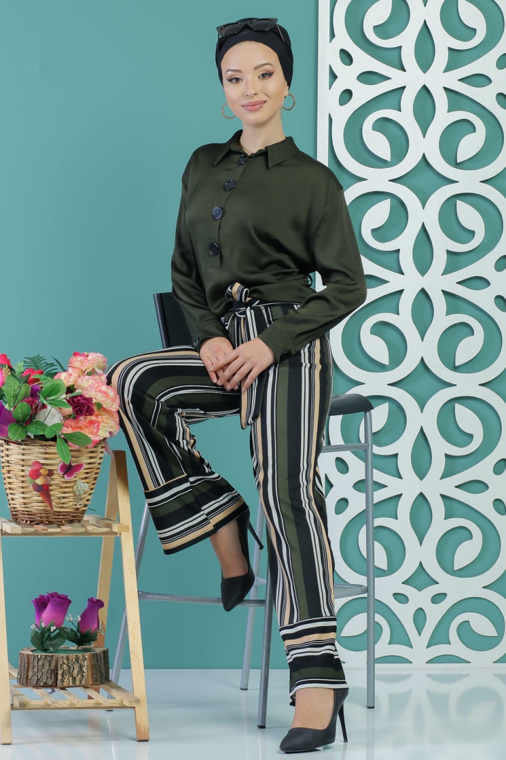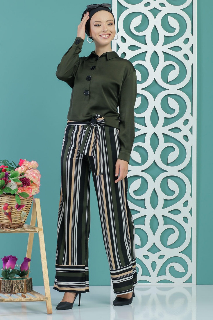 Pantalon cigarette (Vetement femme voilée - Grande taille disponible) - Couleur kaki - REF. 32764 (24.90 €) - En Promotion à 19.00 €