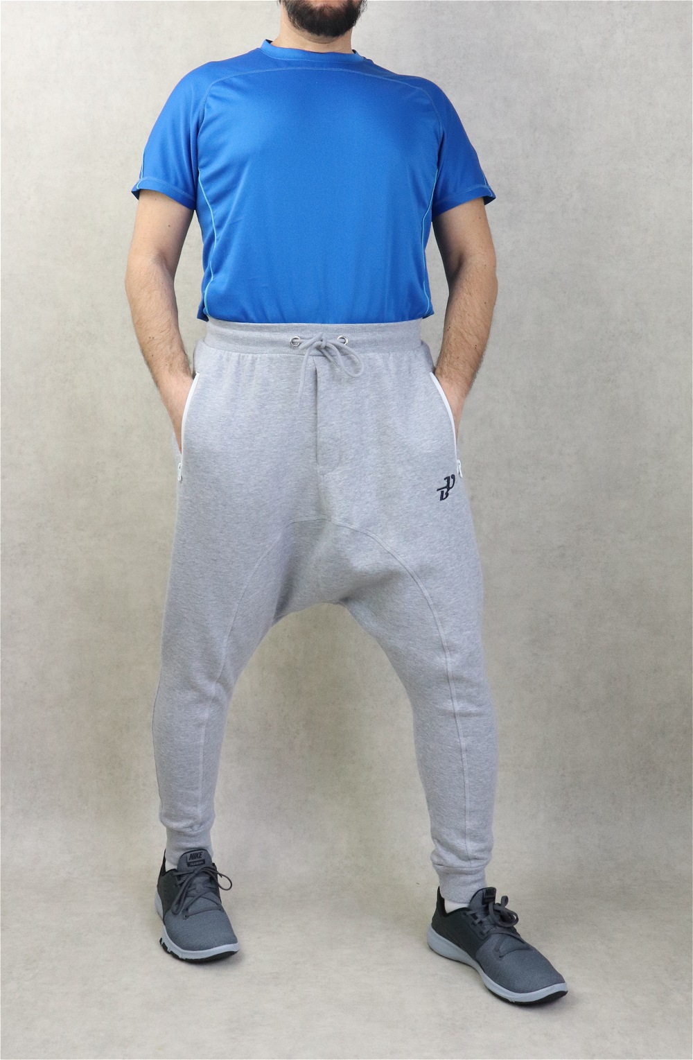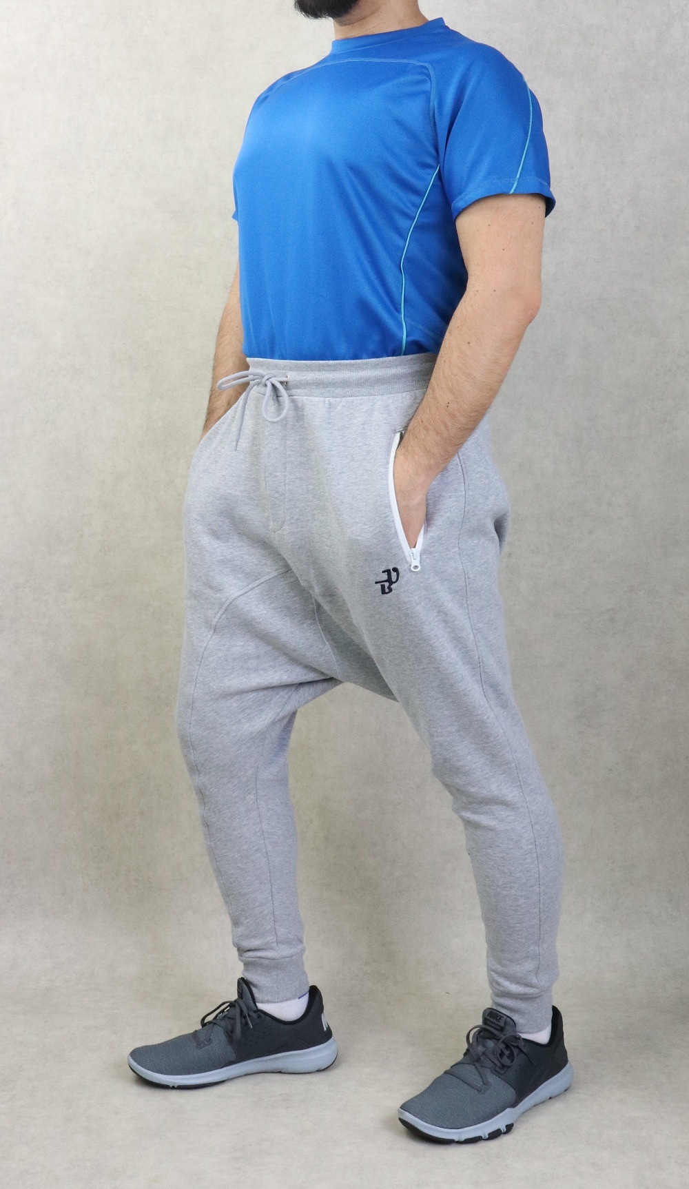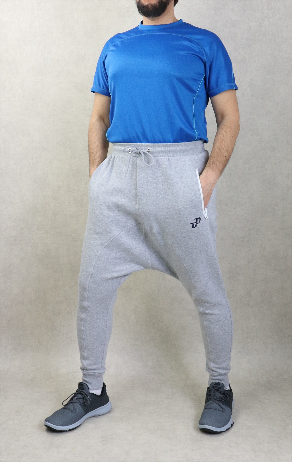 Pantalon jogging type Sarouel coton molletonné zippé aux chevilles pour homme - Marque Best Ummah - Couleur Gris clair chiné - REF. 36708 (29.90 €)
