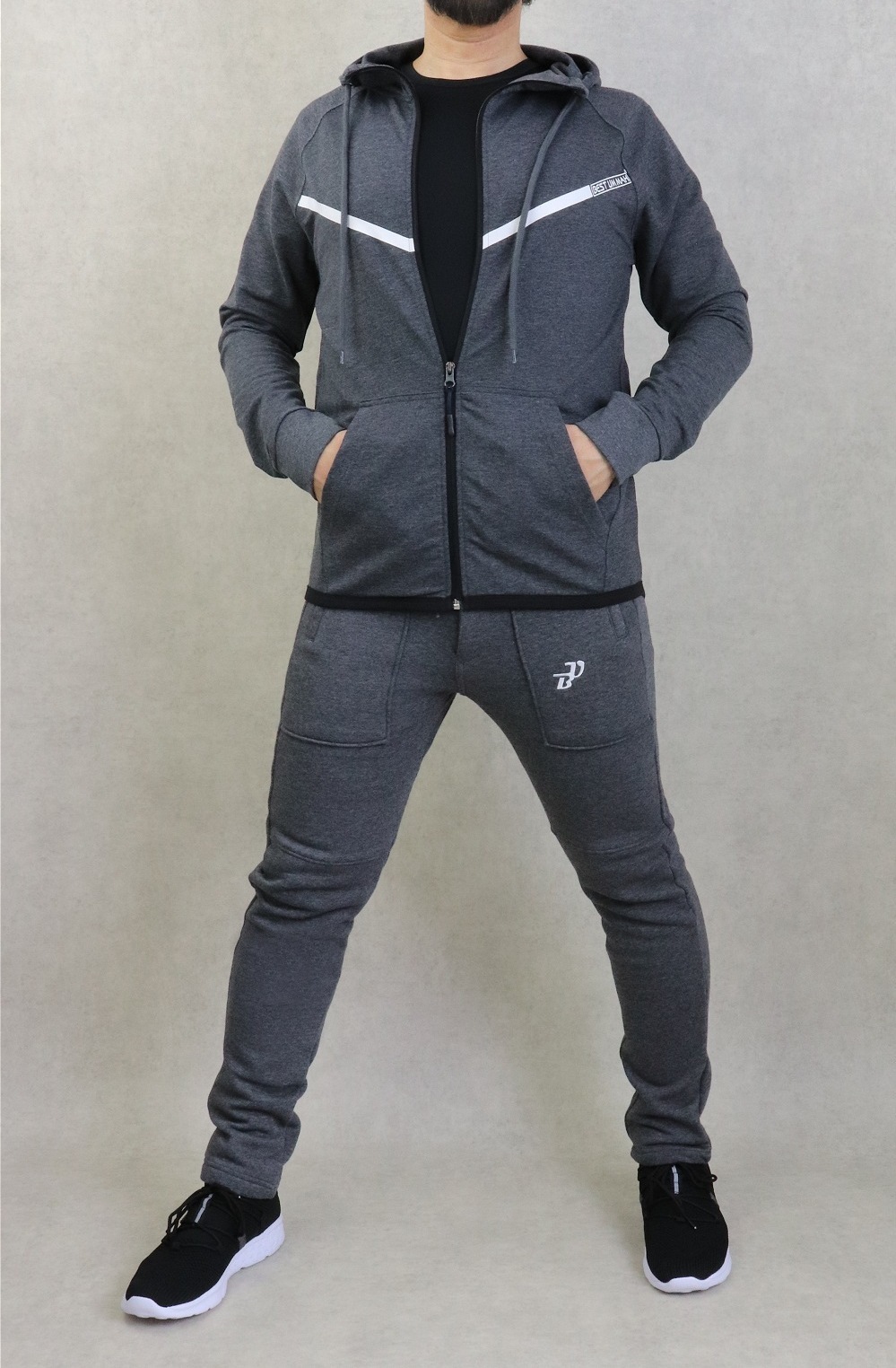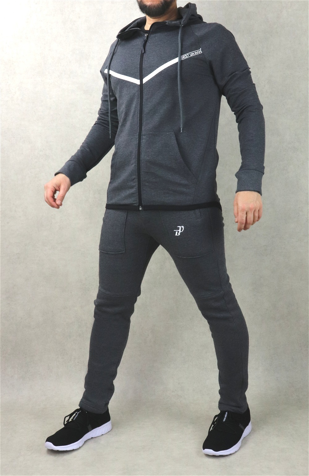 Survêtement Jogging à capuche avec bandes noires et blanches tissu molletonné inscription Best Ummah - Couleur Gris foncé chiné - REF. 36499 (59.90 €)