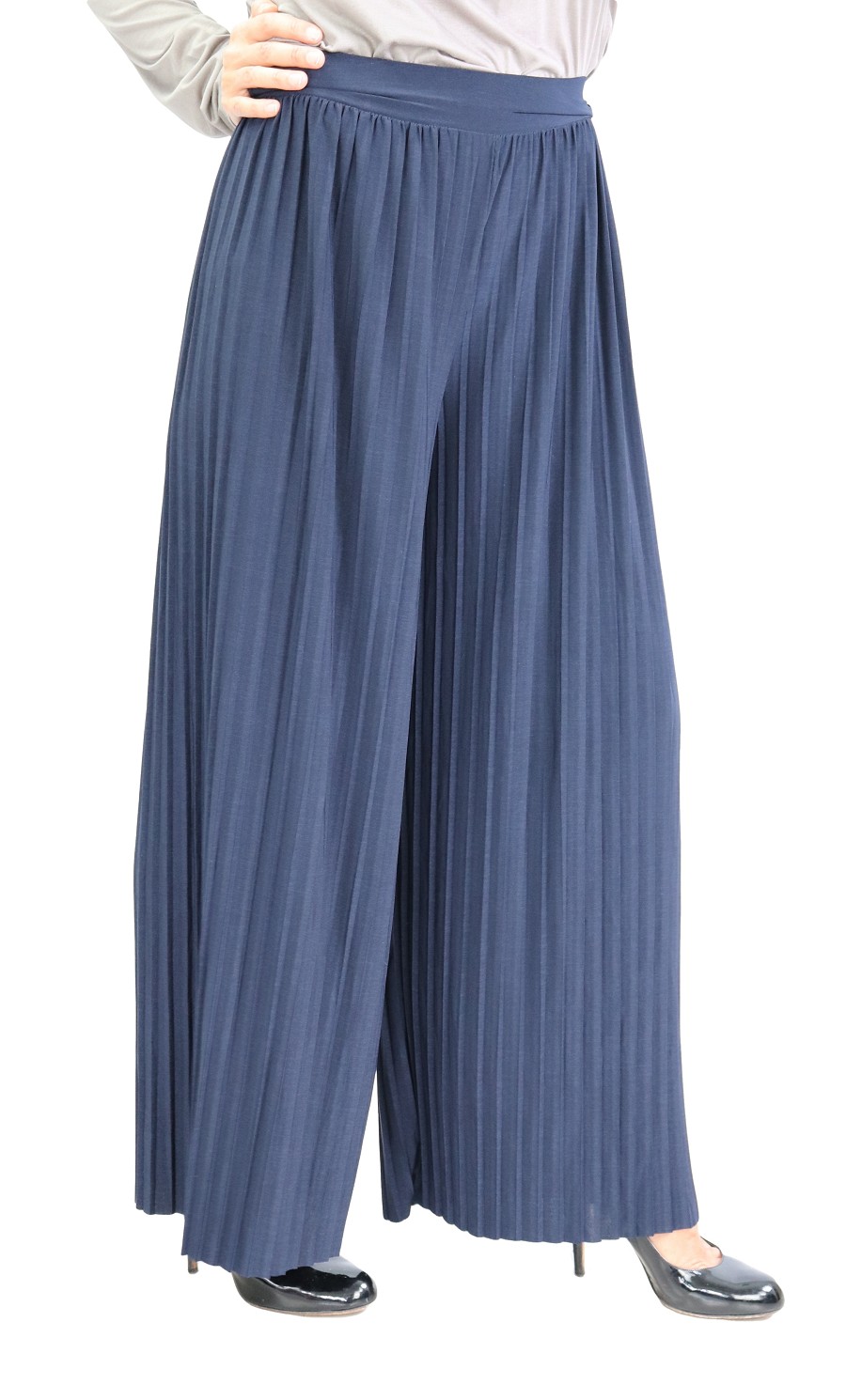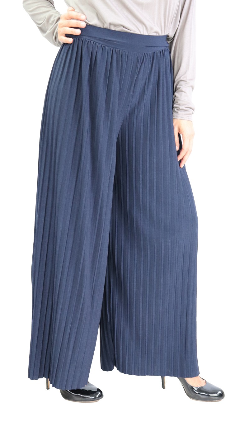 Pantalon large, tissu fluide, taille élastique. Avec sa coupe et son effet plissé ce modèle donne toute sa féminité au pantalon.