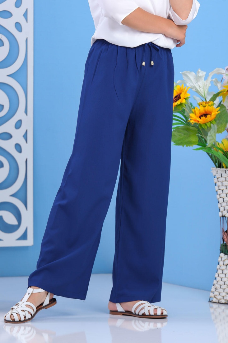 Pantalon long, coupe droite, taille élastique. Ce vêtement élégant est en tissu crêpe et fluide, accommodé d'un lien de serrage, il sera parfait pour la mi saison.