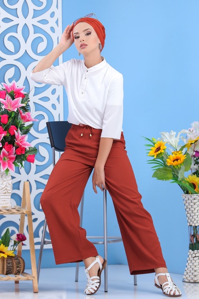Pantalon large pour femme (Pantalons Grandes tailles) - Couleur rouille Vetement & Accessoire