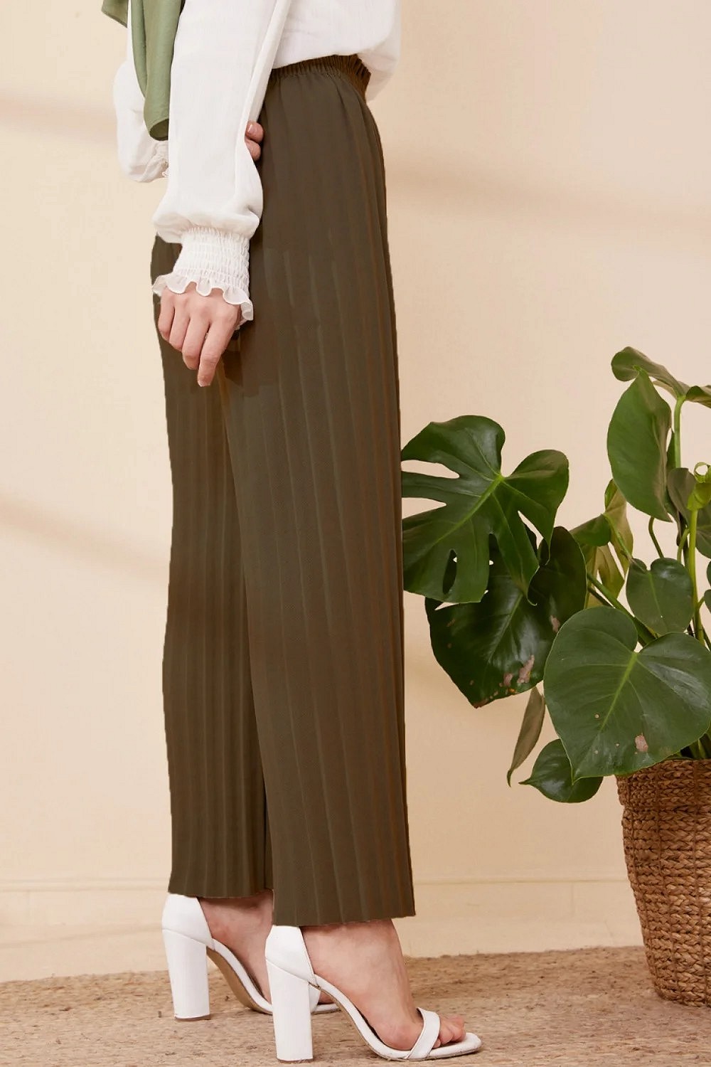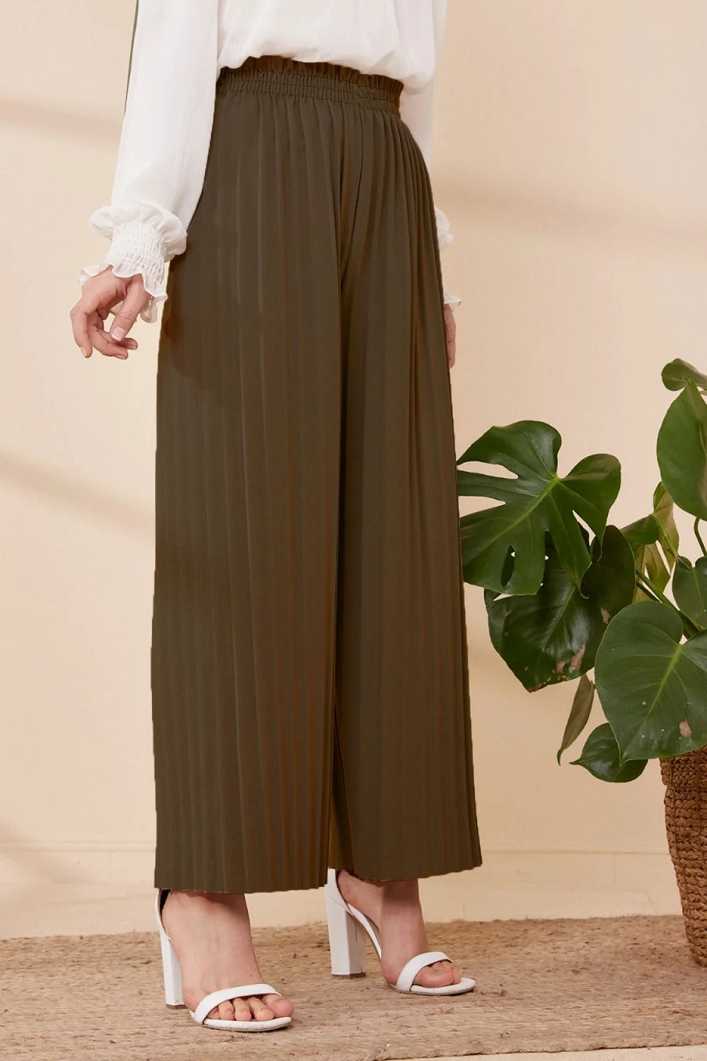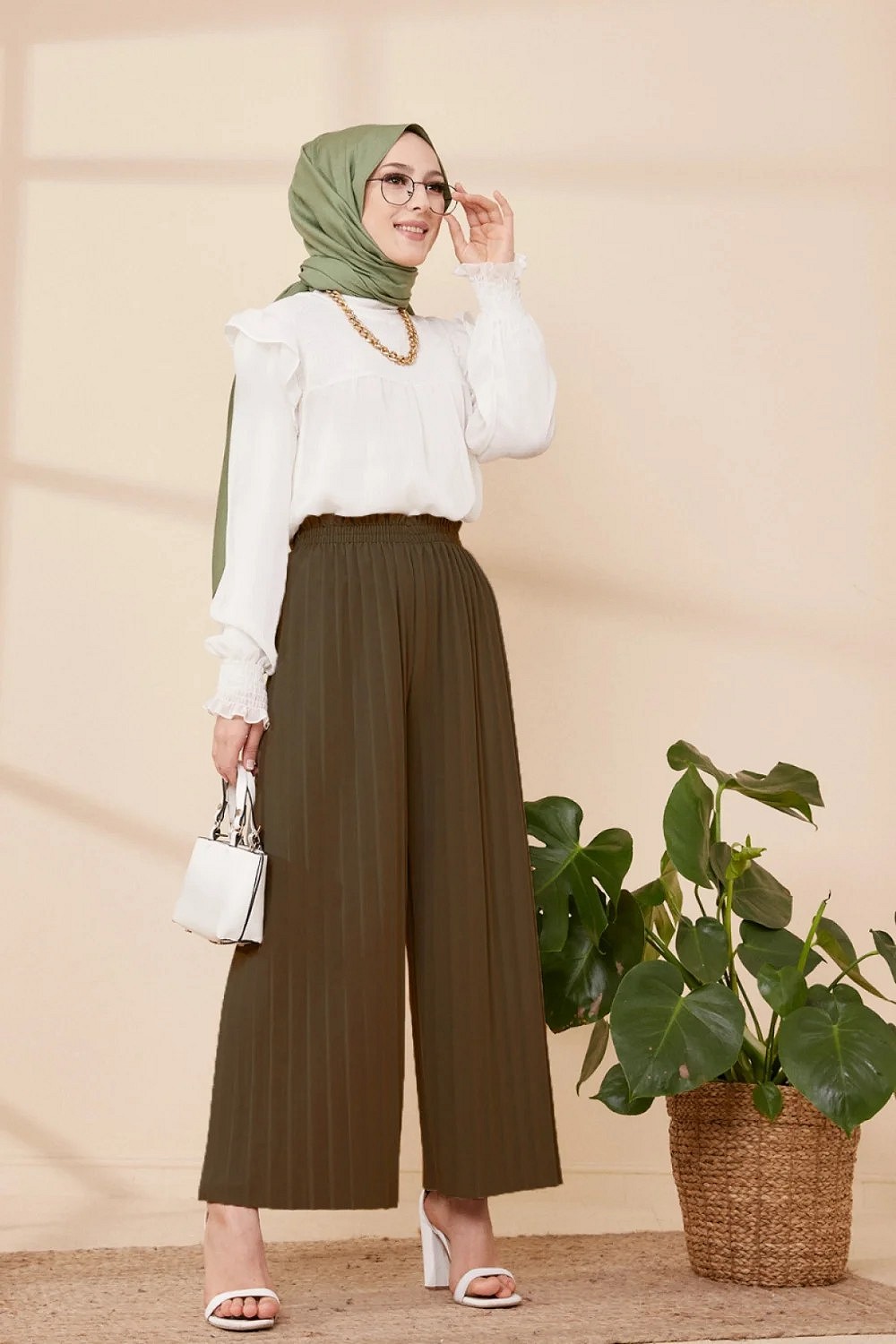 Pantalon plissé pour femme - Couleur kaki Vetement & Accessoire