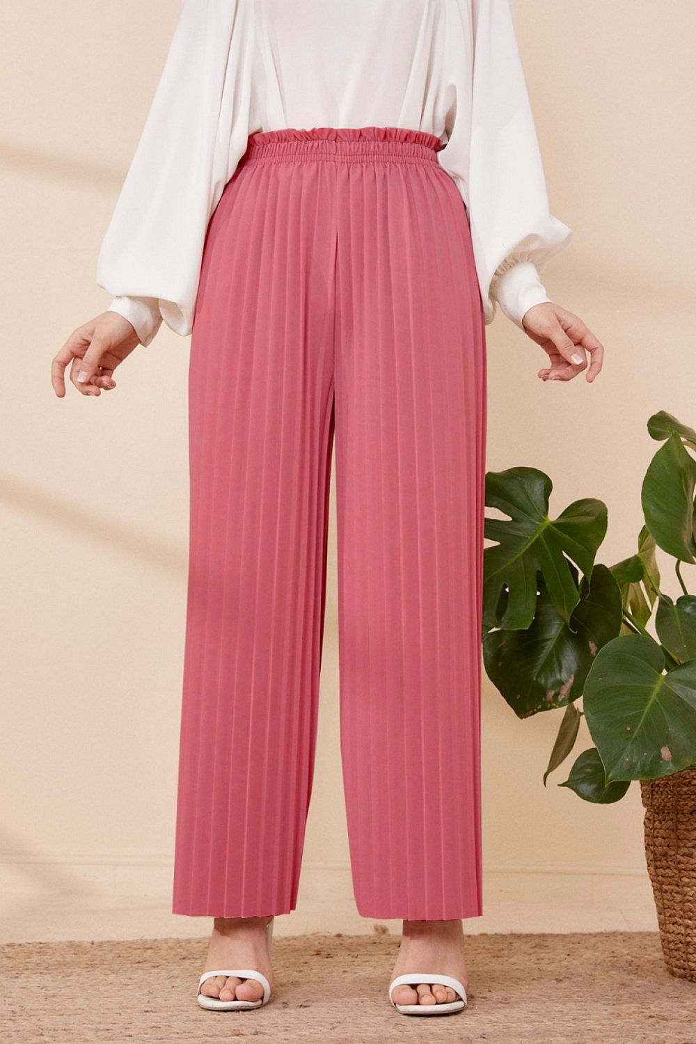 Pantalon plissé pour femmes - Couleur Vieux rese Vetement & Accessoire