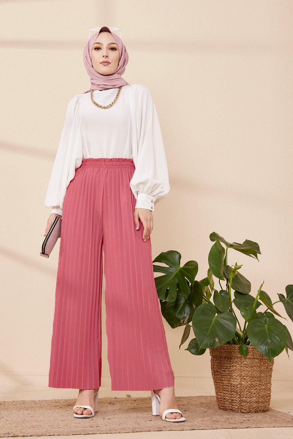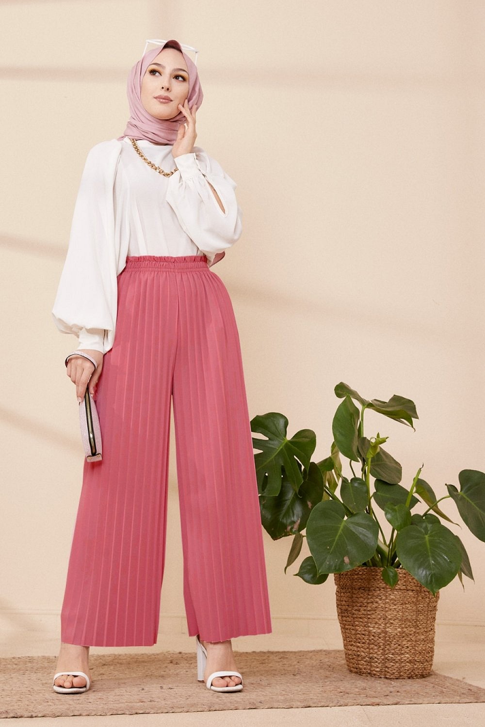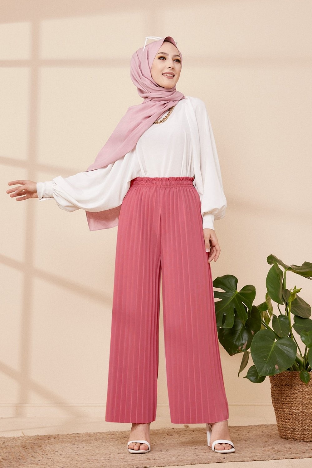 Pantalon plisse pour femmes - Couleur Vieux rese