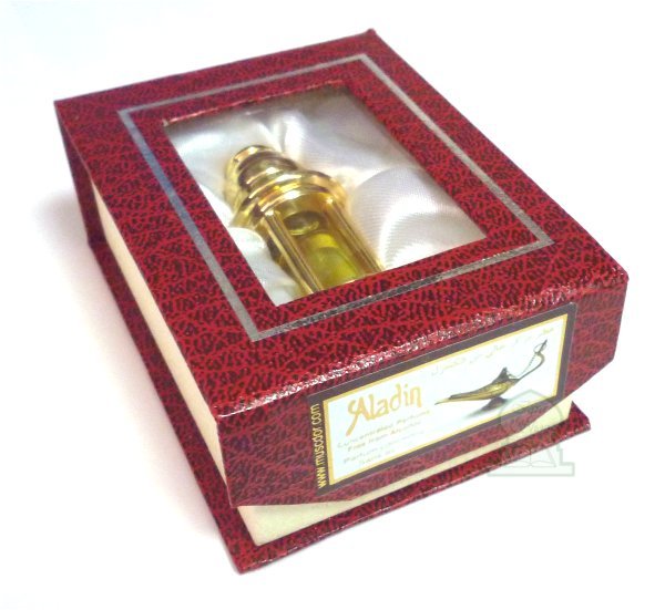Parfum concentré sans alcool "Aladin" en bouteille métallique dorée avec boite cadeau. Parfum mixte.