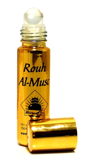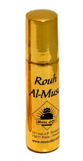 Parfum concentré sans alcool Musc d'Or "Rouh Al-Musc" (8 ml). En arabe Rûh Al-Musk (روح المسك) signifie l'âme du musc. Jolie bouteille dorée.