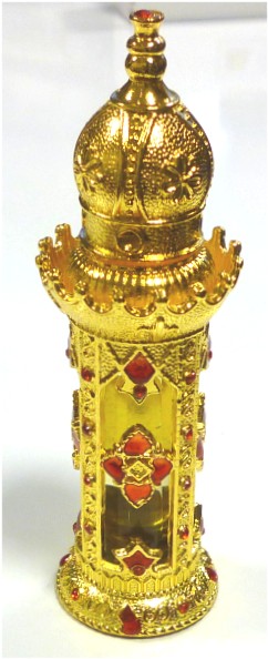 Musc "Sultan" concentré sans alcool dans une très jolie bouteille dorée.