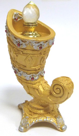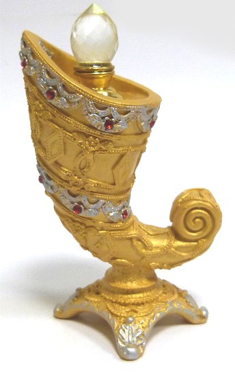 Parfum Musc d'Or "Aladin" - 3ml - Bouteille-Lampe merveilleuse d'Aladin dorée avec fleurs et arabesques - REF. 12950 (12.00 €)
