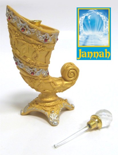 Flacon sous forme de coquillage doré et argenté. Parfum fruité l'odeur inspirant l'odeur du Paradis (Jannah en arabe)... Il est composé d'une sélection de matières naturelles et raffinées.