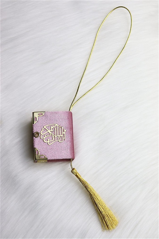 Pendentif Mini-Coran recouvert de velours avec parties dorées (Décoration islam) - Couleur rose - REF. 34501 (4.90 €)