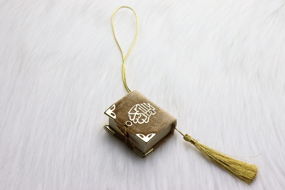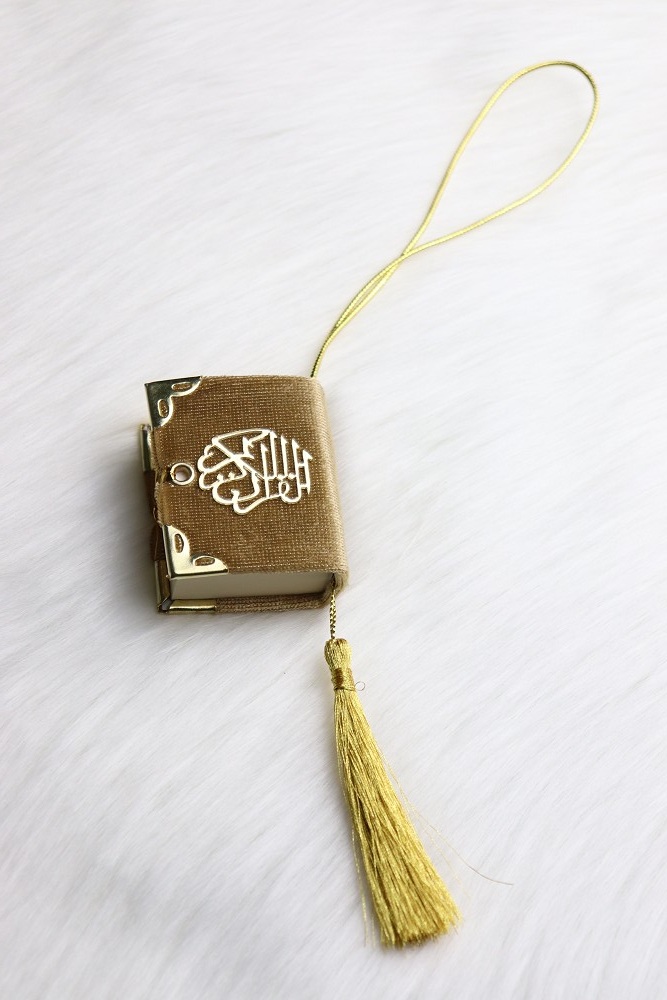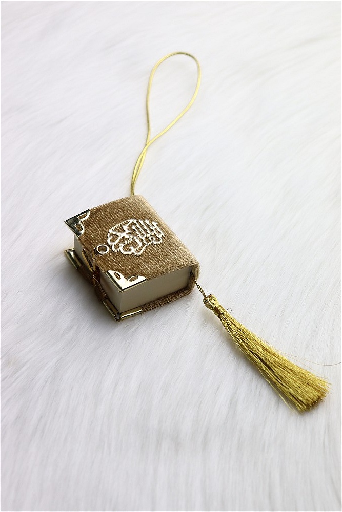 Pendentif Mini-Coran recouvert de velours avec parties dorées (Décoration islamique) - Couleur beige or Deco & Cadeau