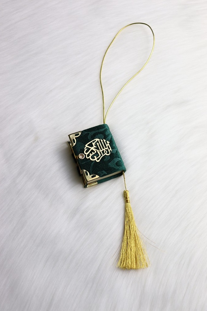Pendentif Mini-Coran recouvert de velours vert avec partie dorée - Décoration Islam Deco & Cadeau
