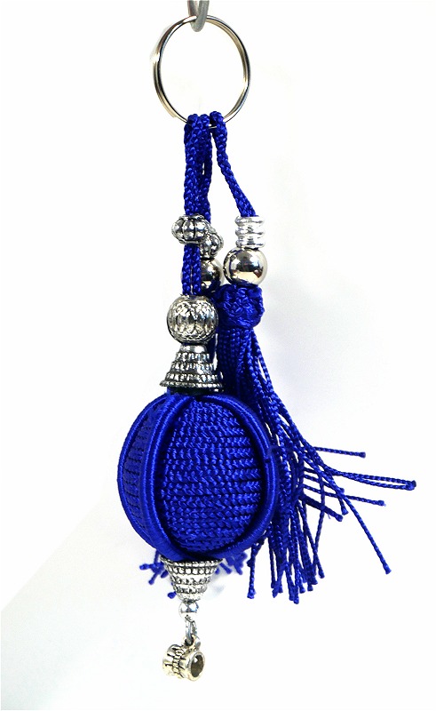 Pendentif / Porte-clés artisanal en sabra avec pompons - Bleu - REF. 29051 (4.90 €)