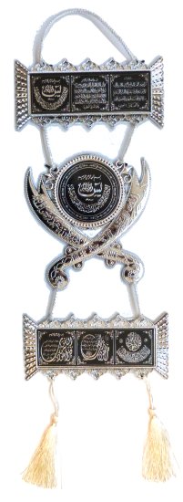 Décoration argentée avec inscriptions Sourates "Al Fatiha", "Al-Ikhlâss" et "Al-Falaq" - REF. 21749 (8.50 €)