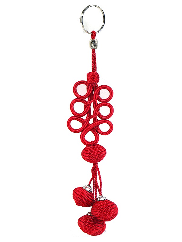 Pendentif décoratif / Porte-clés artisanal en sabra avec pompons - Rouge - REF. 29055 (4.90 €)