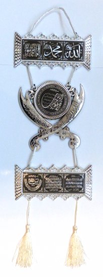 Décoration islamique toute argentée avec les calligraphies sur trois parties :