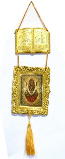 Pendentif dorée de décoration avec Bassmalah, Le nom de prophète (saw) et Sourate Yassin - REF. 23992 (3.90 €)