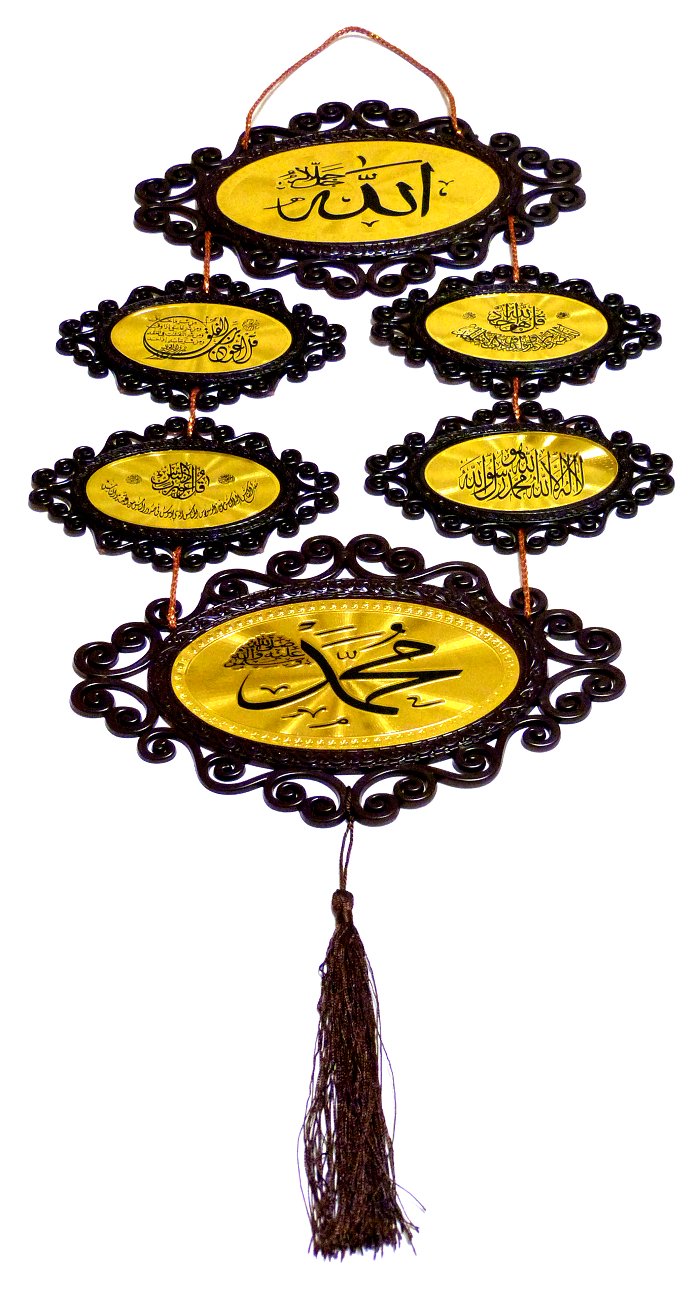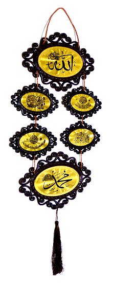 Décoration musulmane contituée de 6 cadres ovales reliés les uns aux autrse par un filament argenté, le tout se terminant par un pompon.