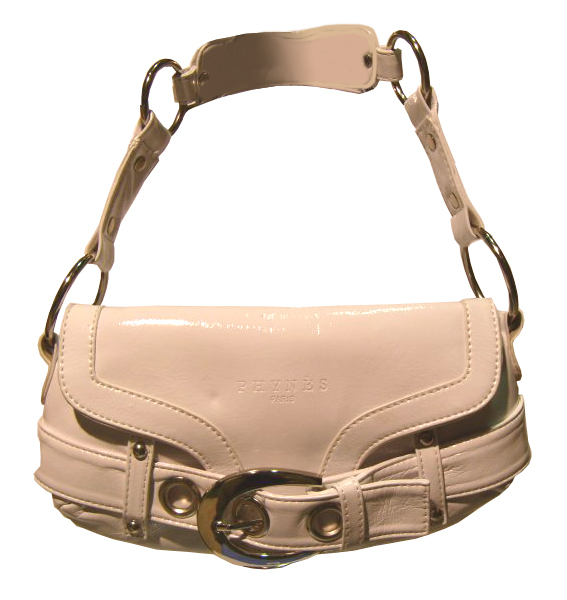 Petit sac à main blanc grand stylisé par son aspect verni.