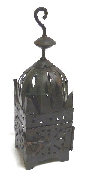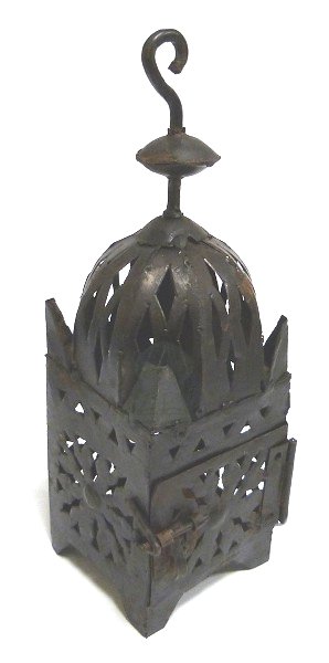 Cette lanterne est fabriquée en fer forgé, décoré de magnifiques ciselures sur toutes ses facettes, rappelant les motifs andalou-maghrébins.
