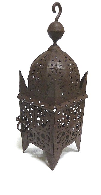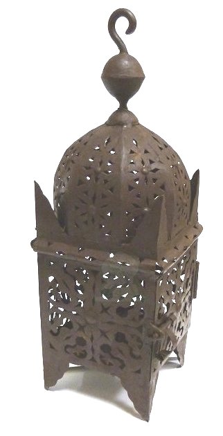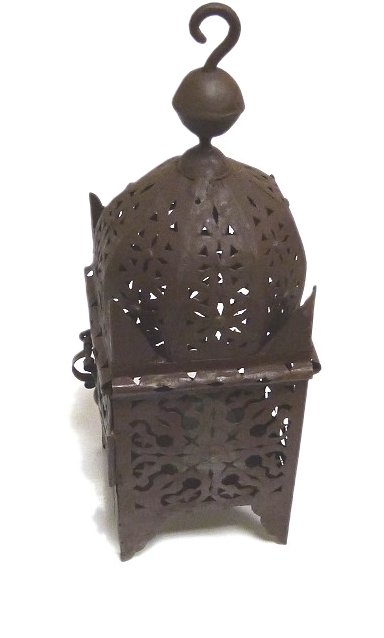 Superbe lanterne marocaine de fabrication artisanale, en provenance de Marrakech, de type Slimani, de taille petite, de couleur marron terne...