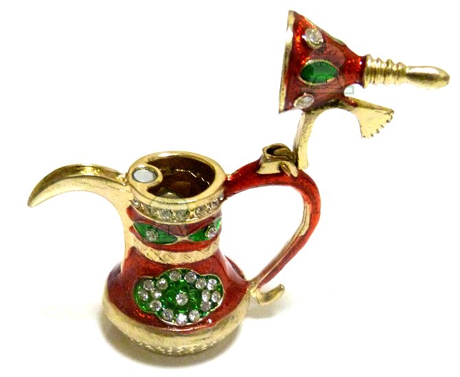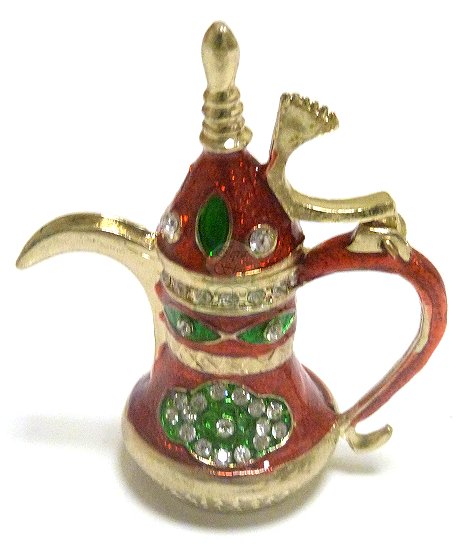 Très bel objet décoratif métallique, orné de diamants, avec parties dorées et peint en rouge.