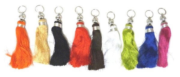 Petits porte clés pompon en sabra (plusieurs coloris) avec métal argenté - REF. 15440 (3.90 €)
