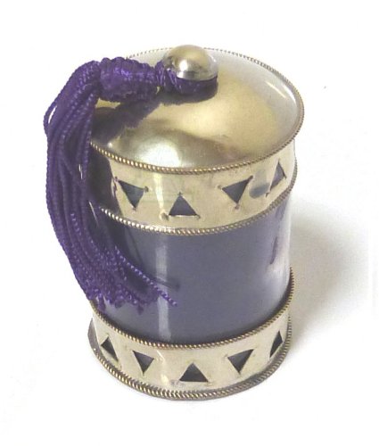 Photophore / Bougeoir en verre avec bougie cerclee de metal argente cisele termine d'un pompon en Sabra - Modele violet