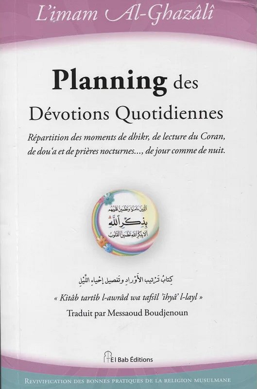 Répartition des moments de dhikr, de lecture du Coran, de dou‘a et de prières nocturnes..., de jour comme de nuit, de l'imam Al-Ghazâlî, Collection Revivification des Bonnes Pratiques de la Religion Musulmane, Traduction du livre : «Kitâb Tartîb-l-awrâd wa tafsîl 'ihyâ' l-layl » (كتاب ترتيب الأوراد وتفصيل إحياء الليل ), Traduit par Messaoud Boudjenoun