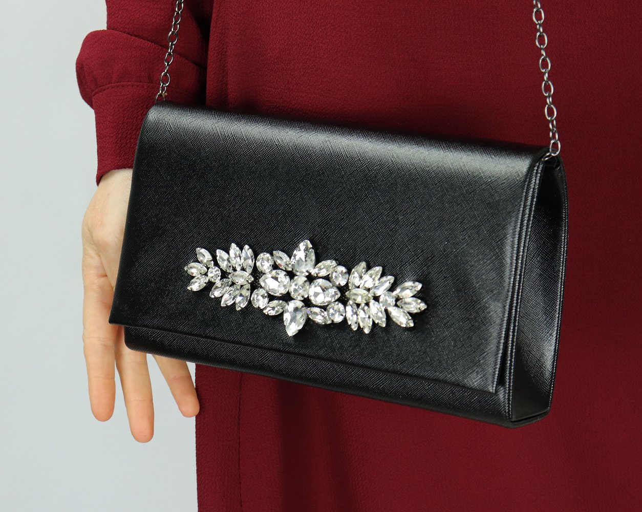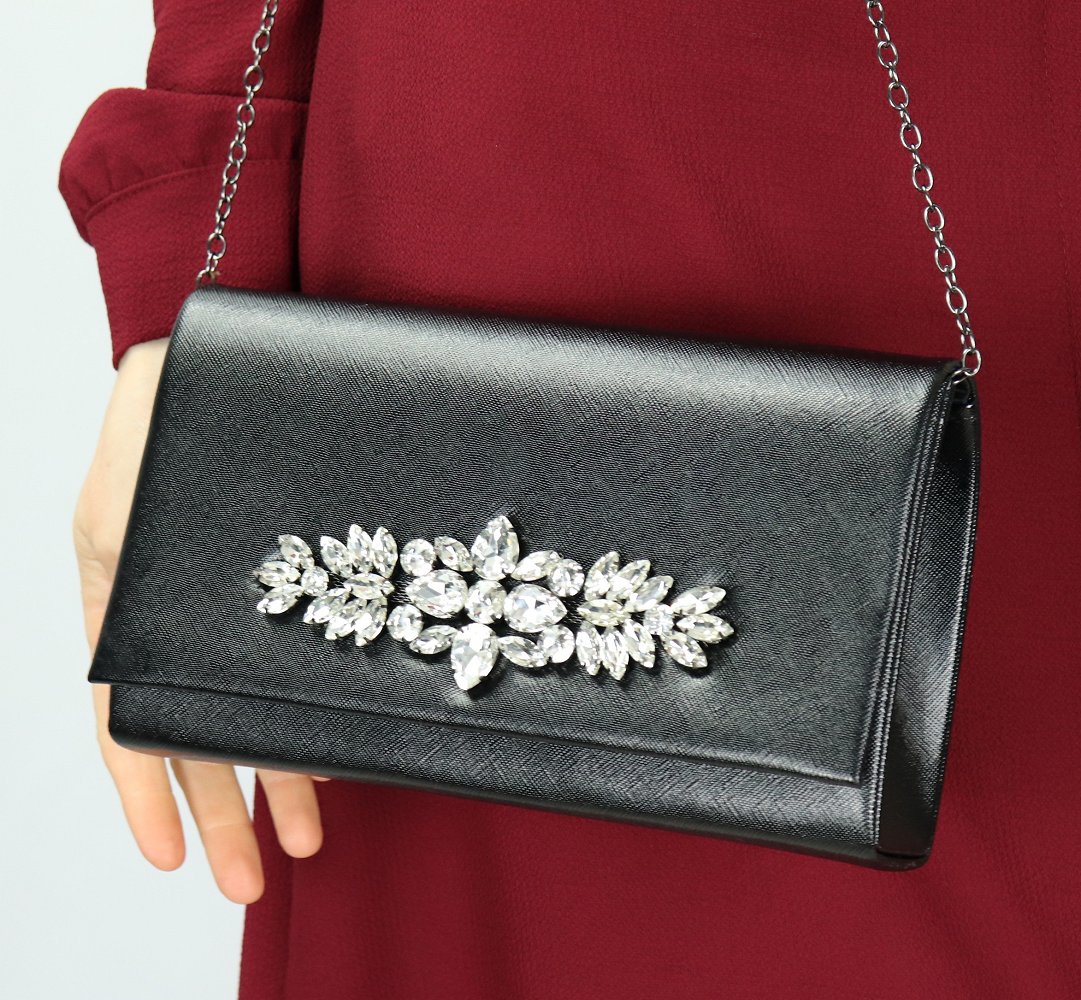 Sac de soirée rigide pour femme avec chaîne - Sac à main de Mariage - Couleur Noir - REF. 32636 (26.00 €)