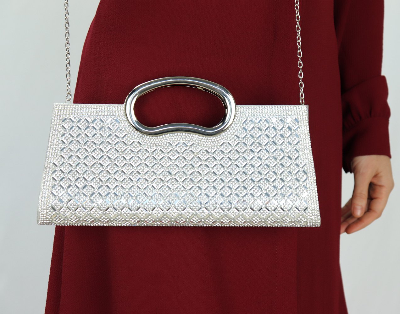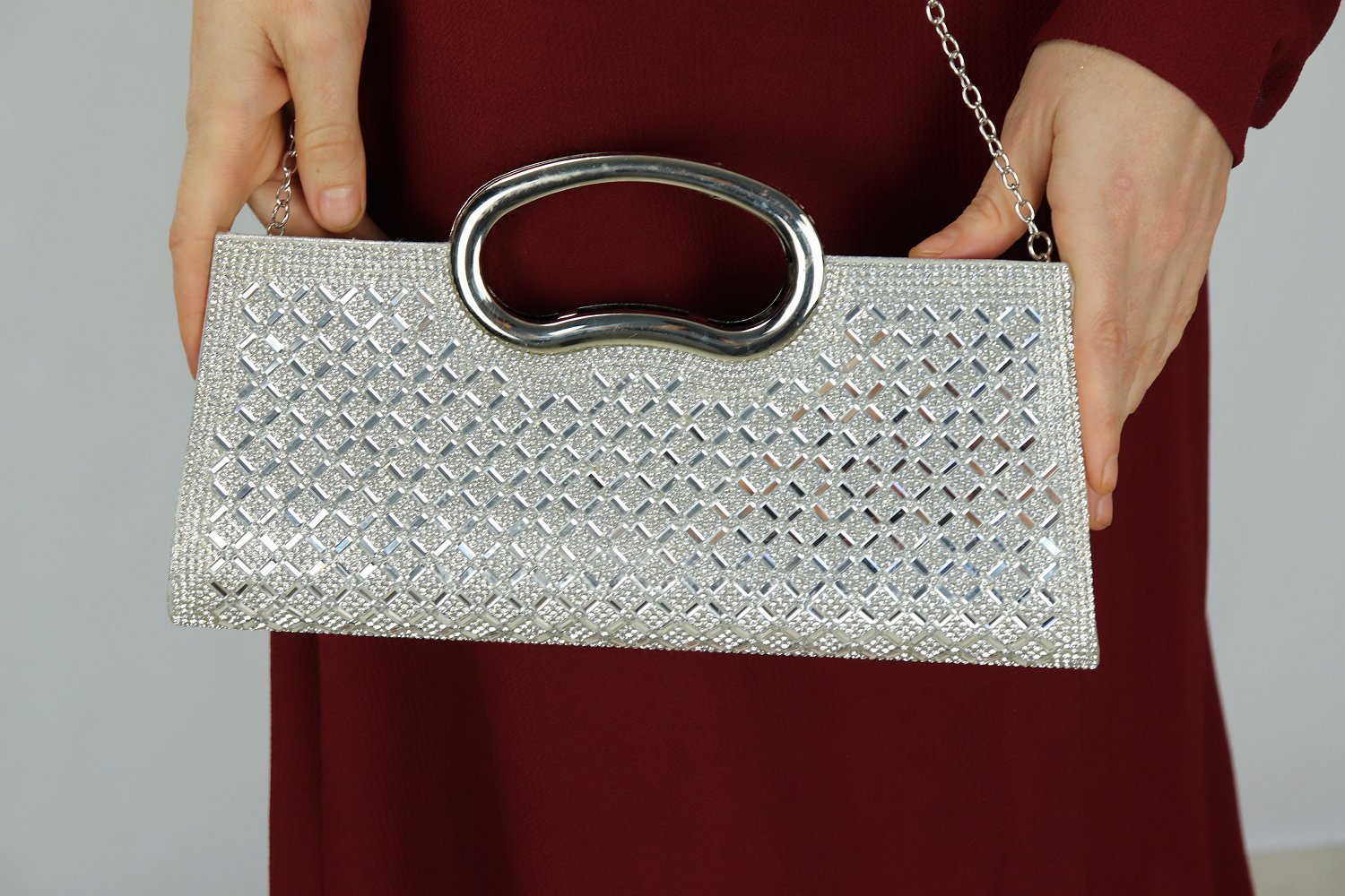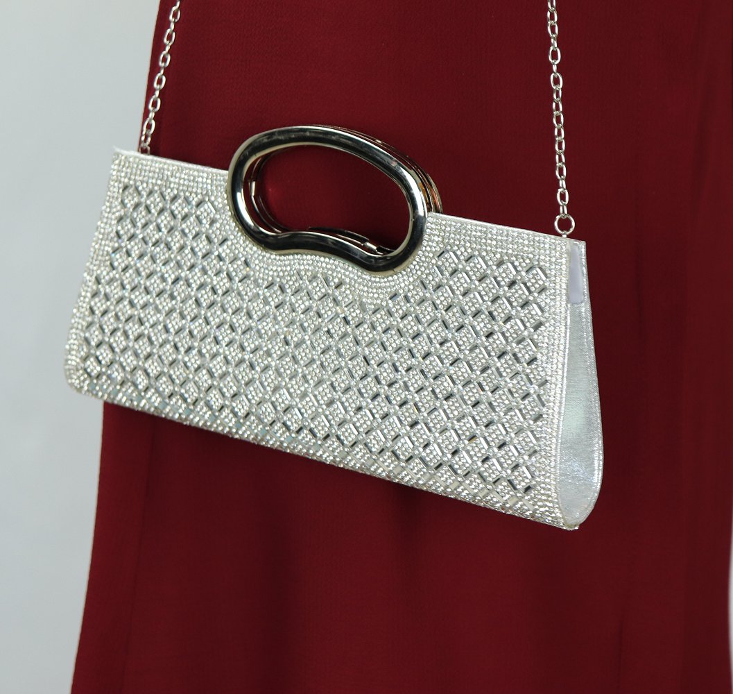 Pochette de soirée à poignet métallique - Sac à main élégant pour femme - Couleur argenté Vetement & Accessoire