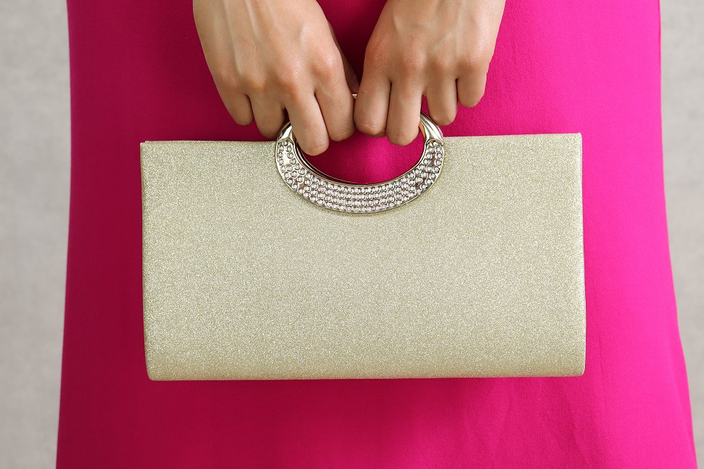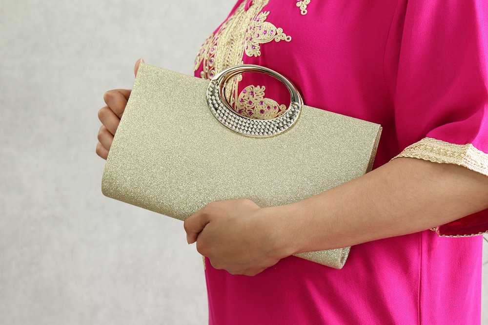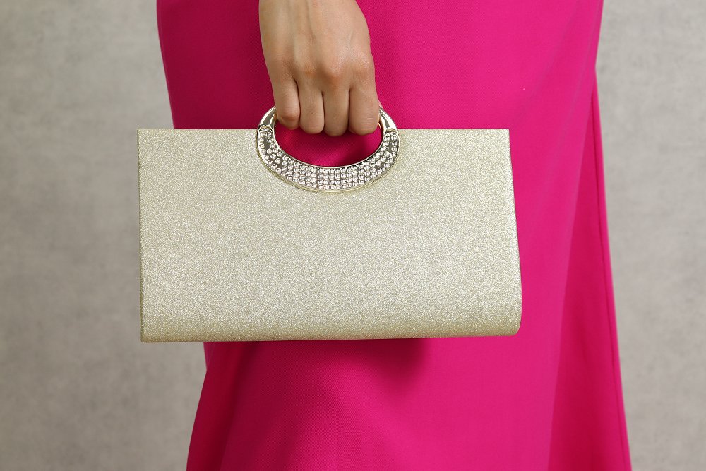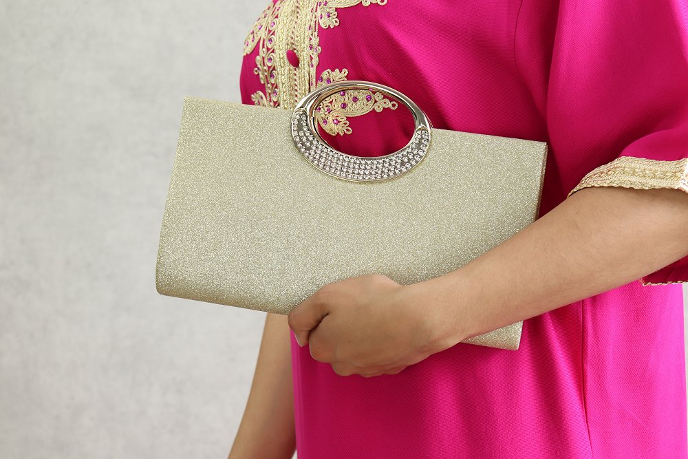 Pochette de soirée à poignet métallique - Sac à main tendance pour femme - Couleur doré Vetement & Accessoire