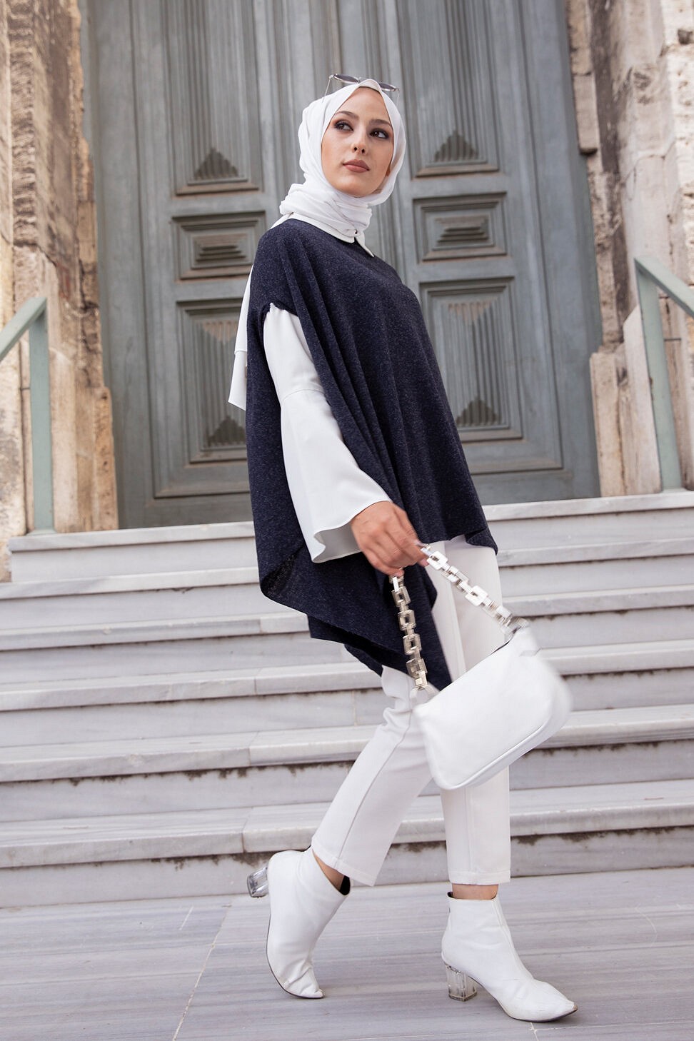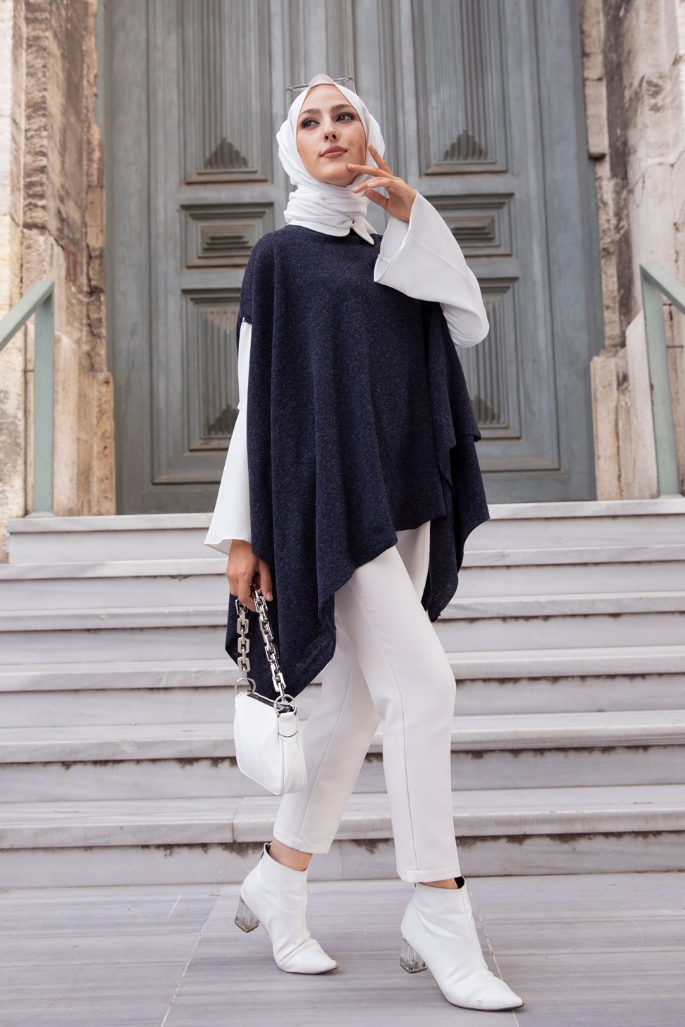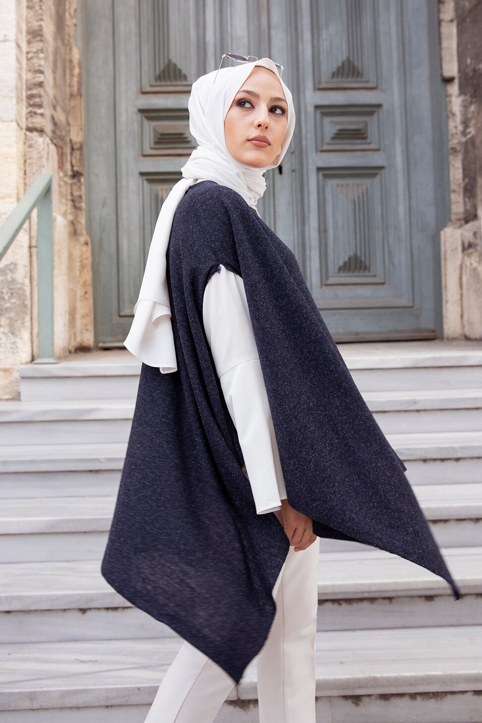 Poncho pour femme (Cape pour toutes les saisons) - Couleur bleu marine Vetement & Accessoire