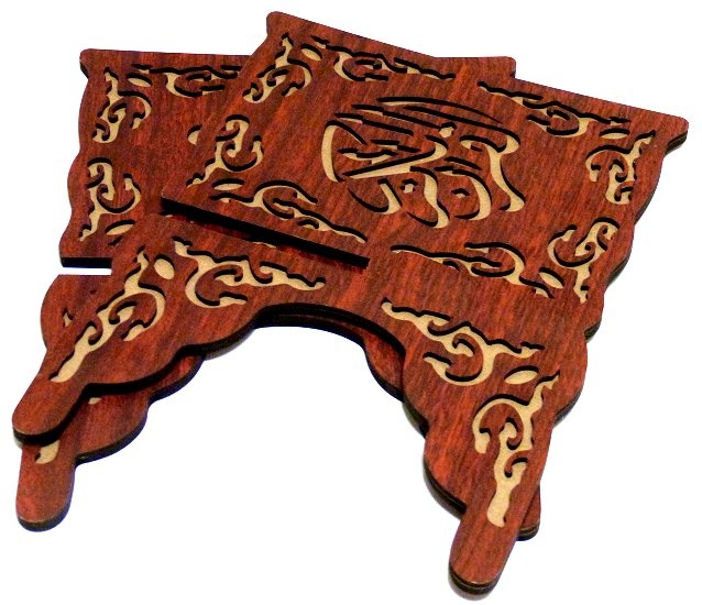 Porte Coran en bois luxueux sculpté en style arabesque de couleur acajou (25 x 33 cm) - 2 pièces - REF. 20193 (16.00 €) - En Promotion à 12.90 €