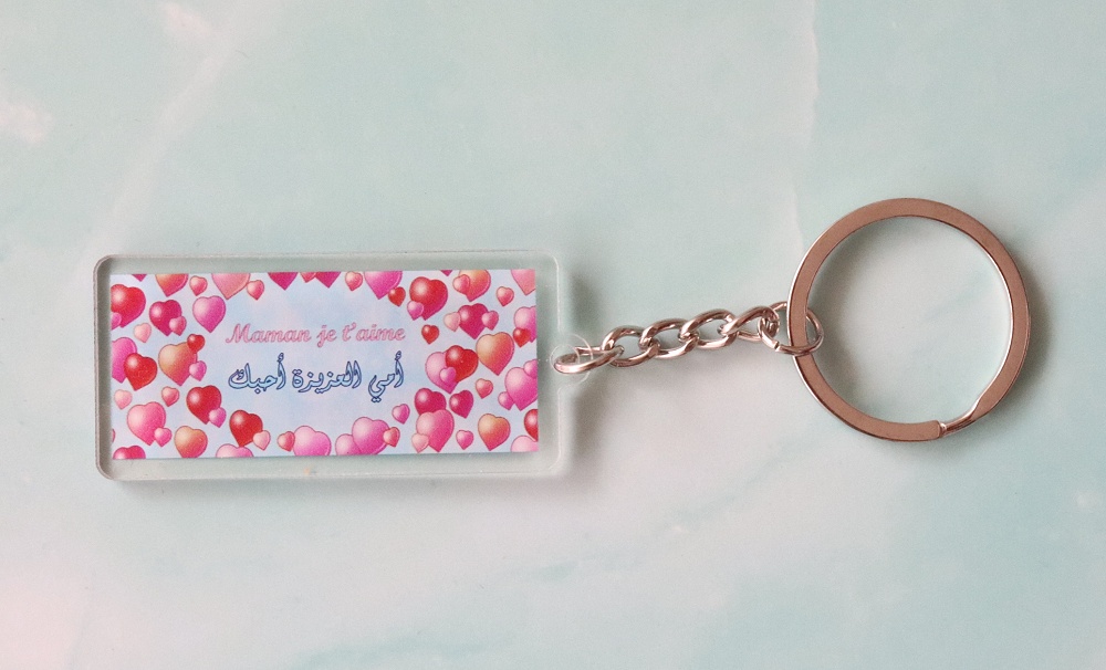 Porte clé "Maman je t'aime" écrit en français et arabe.