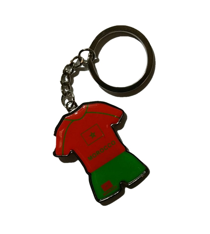 Porte cle metallique vert et rouge sous forme de tenue du foot-ball marocain