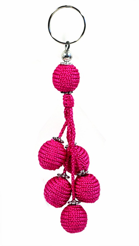 Pendentif / Porte-clés artisanal en sabra avec pompons - Fushia - REF. 29050 (4.90 €)