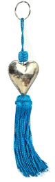 Décoration / Porte-clés artisanal coeur en métal argenté ciselé et pompon en sabra - Bleu - REF. 29151 (4.90 €)