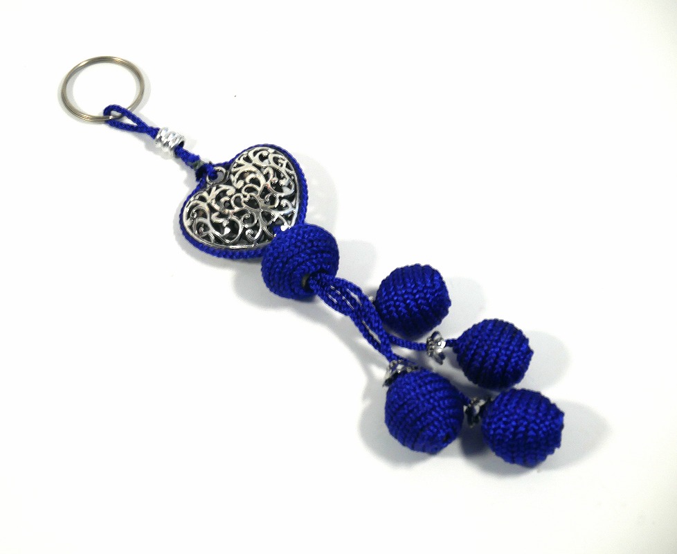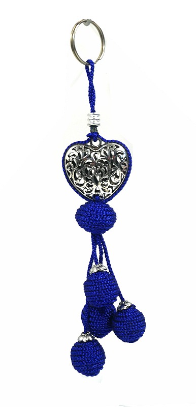 Porte-clés tout en originalité, il a été fabriqué de manière artisanale à Marrakech. Le cœur a été fait en métal argenté et les pompons en sabra pour un effet stylé. Sa couleur bleu fait sa singularité.