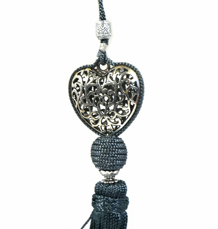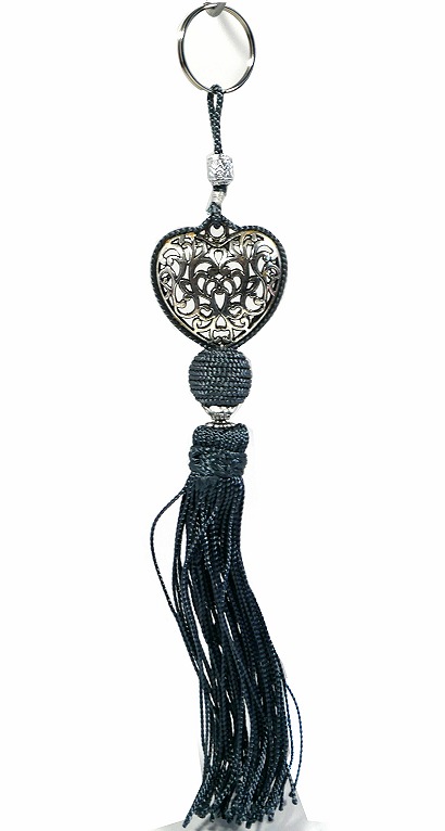 Porte-clés en métal argenté joliment ciselé, constitués de breloques, grand coeur, et de pompon en sabra, avec 8 coloris disponibles... De jolis agréments argentés font de ces porte-clés des pièces originales.