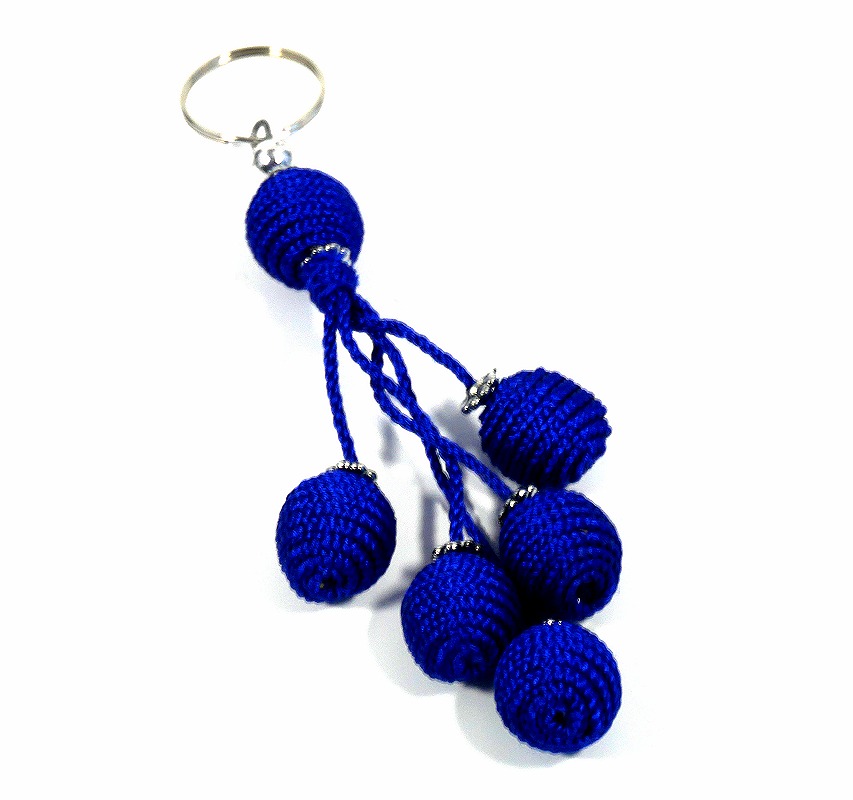 Fabriqué avec passion par un artisan, ce porte-clés avec pompons peut également accessoiriser un sac, une ceinture, un cartable ou autre article.