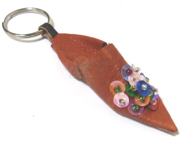 Porte-clés babouche traditionnelle marocaine en cuir orange avec strasses multicouleurs - REF. 17185 (2.50 €)